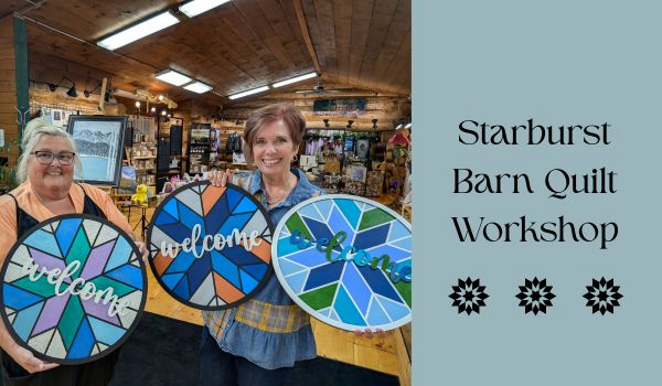 Taught by Darcy Leigh of The Creative Jam! Create a stunning Welcome Starburst 18-inch round wood barn quilt In this hands-on workshop, you’ll paint and assemble your quilt from pre-cut wood pieces,